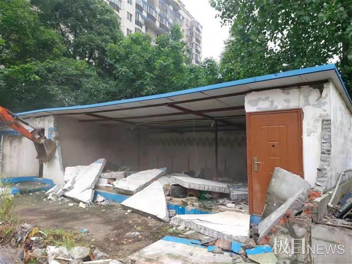 5月3日,洪山街综合执法中心接到群众投诉,反映洪山区红旗欣居B区1栋外面商铺占用公共空间搭建了一处房屋,用于堆放杂物,面积20平方米,经查情况属实,执法人员立即找到当事人,对其宣传教育后,责令其在一周内自拆。因当事人拒绝配合自拆,5月8日,洪山街综合执法中心已组织执法力量对该点位进行拆除。