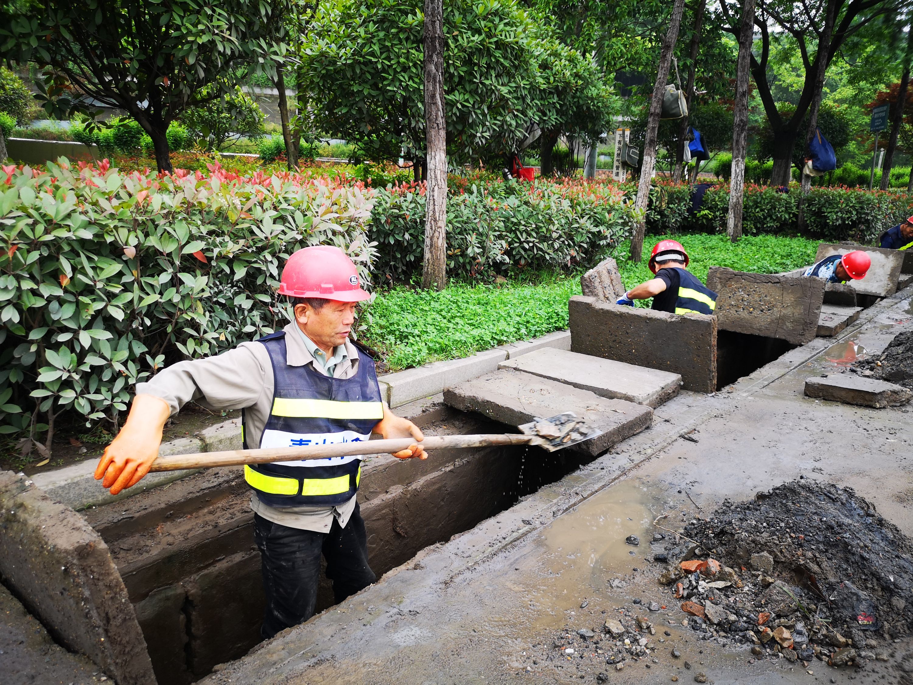 工人们正在和平大道食全氿美点位清理排水沟渠。 长江日报记者覃柳玮 摄
