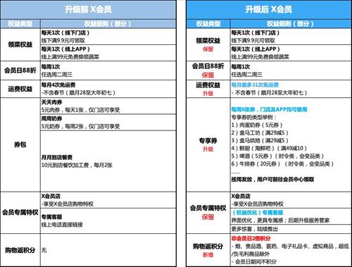 根据升级方案可见,除了公众日常较为欢迎的“会员日88折”、“领菜权益”依然保留之外,本次升级在运费和专享券上做了调整。