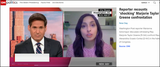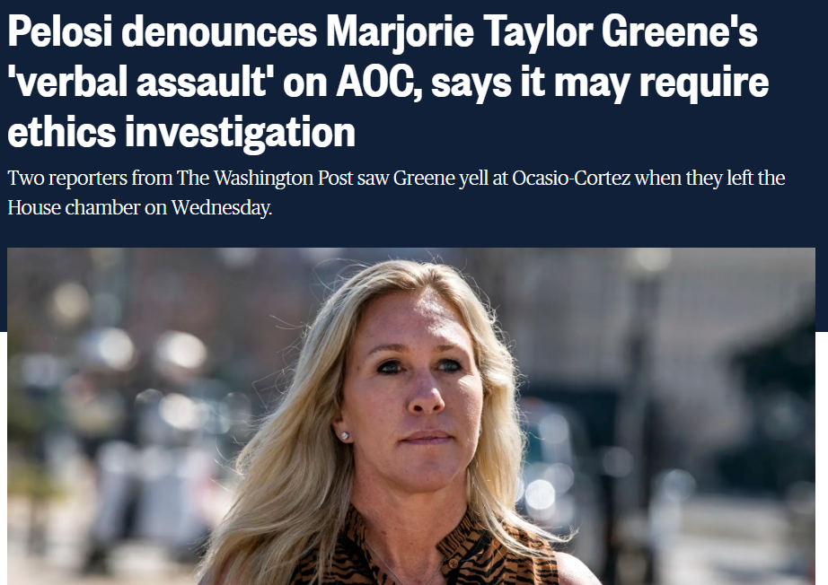 遭遇罢免、被同僚排挤后,不甘寂寞的泰勒·格林还屡屡靠夸张言行制造大新闻。12日当天,在民主党籍议员科尔特斯在会场内发言时,泰勒·格林在门外厉声尖叫,用粗言秽语辱骂自己的政敌,并指责科尔特斯等民主党人支持抗议团体“安提法”的“恐怖活动”。