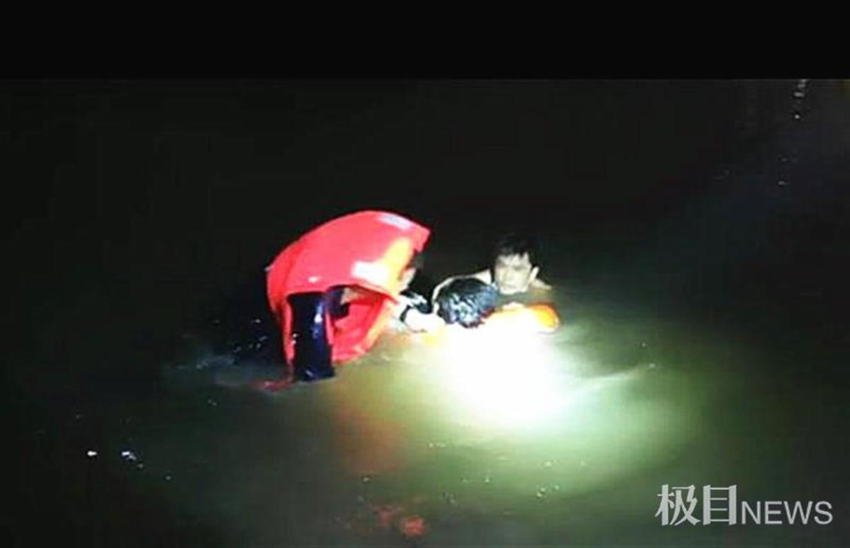 就着手电筒的微光望去,水中隐约有人在挣扎,时沉时浮。“人还在水面上,赶快救人!”民警刘文生一边惊呼,一边与水性较好的辅警陈波踩着淤泥朝着落水方向跑去。辅警陈波边跑边脱衣服,抱起救生圈,纵身跳进水里,朝着那个扑腾的人影奋力游去。