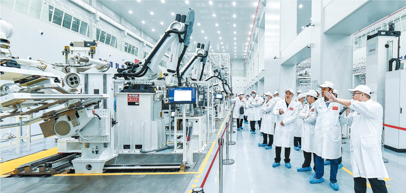 5月13日,嘉宾在武汉国家航天产业基地参观卫星智能生产线。 长江日报记者 胡冬冬 摄