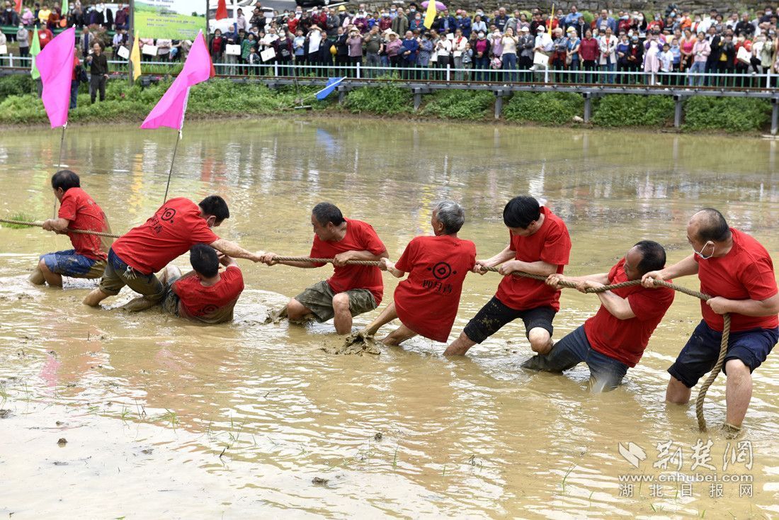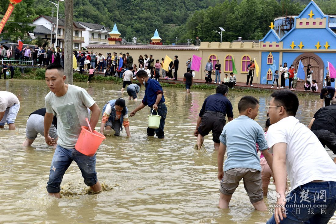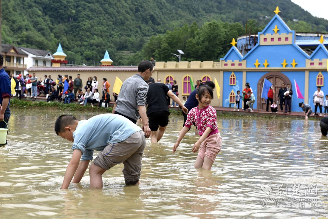 活动现场,喜庆的节日氛围映着村民们的张张笑脸,独具兴山特色的农特产品和传统手工艺品展台前,挤满了前来咨询的群众和游客。稻田里欢声笑话,拔泥河比赛吸引了千余名加油助威的群众,村民们表演的“浑水摸鱼”、趣味插秧、摸泥鳅、钓鮰鱼等传统农耕节目,让现场的游客纷纷卷起裤腿,跃跃欲试。