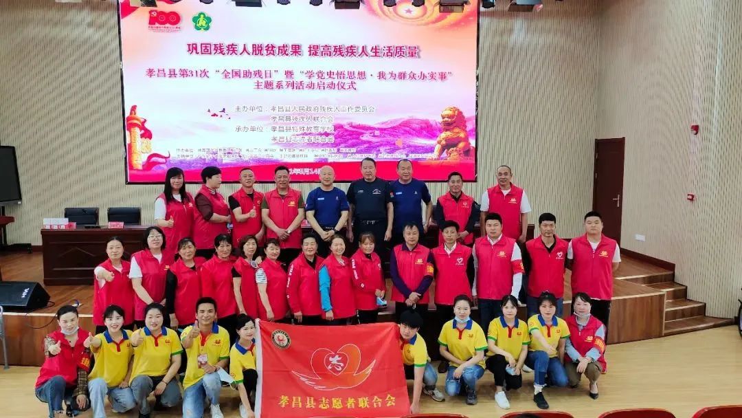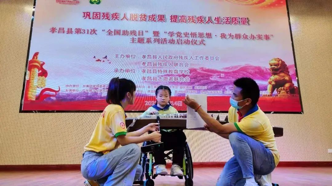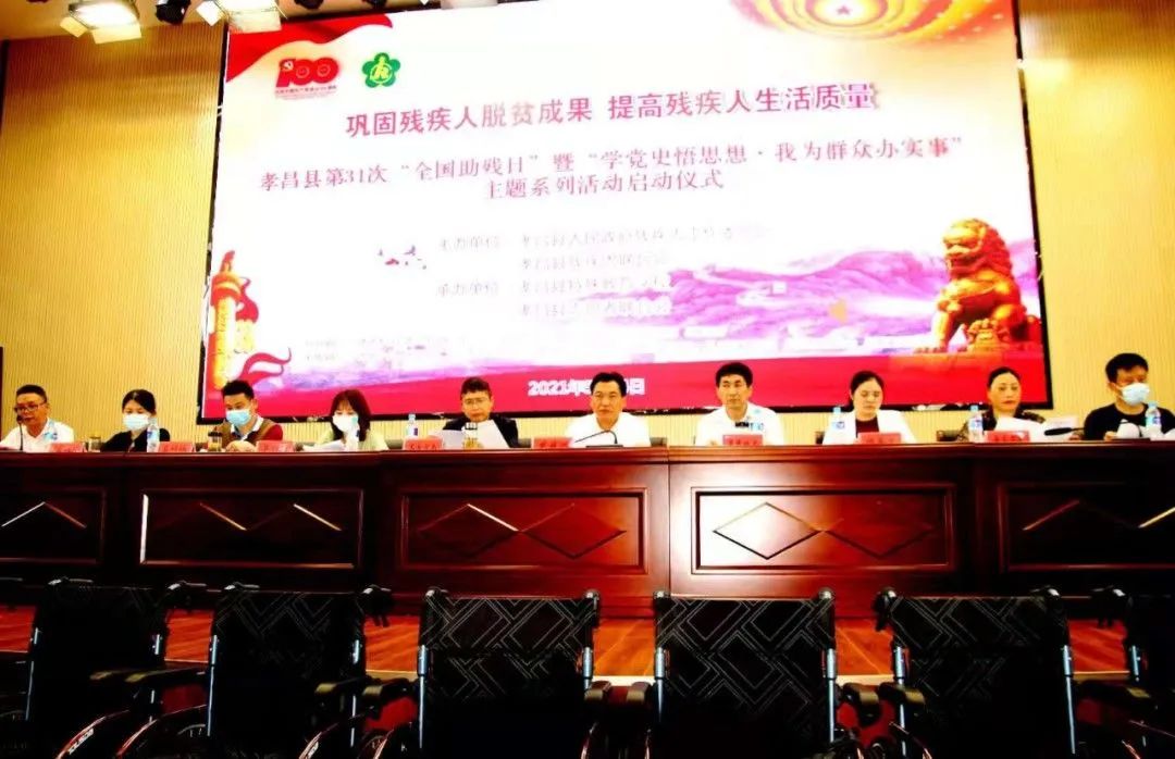 5月14日,孝昌县举办了第31次“全国助残日”暨“学党史悟思想•我为群众办实事”主题系列活动,启动仪式在县清溪实验学校活动中心开展。县委常委、县委统战部部长武斌洲,共青团孝昌县委、县妇联、县总工会、县科协、县工商联、县红十字、县民政局、县教育局、县残联等有关领导、残疾人工作者及志愿者等参加本次活动。