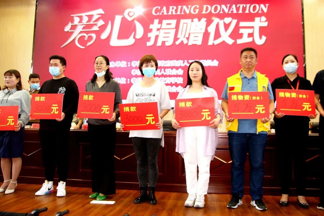 捐赠仪式上,共青团孝昌县委、县妇联、县总工会等向县特校捐赠了爱心款和物资;广东狮子会楚天服务队向县特校捐赠了价值5万元的校服、学生武汉体验游;北京孝昌企业商会捐赠了1万元;孝昌颐德府项目捐赠了价值5万元的消毒水700瓶;县志愿者联合会募捐了价值5万元的爱心温暖包100个及其他物资;孝昌县人和眼科医院(县人和康复医院)向眼疾学生叶凌薇提供了3000元的手术费,这些爱心善举体现了企业扶残助残的无私真情。