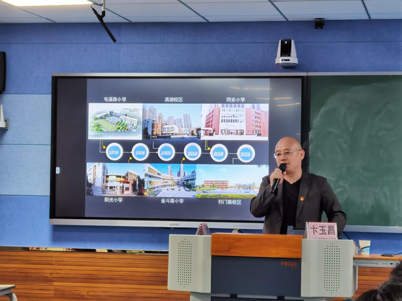 当天下午,校长论坛上,合肥市屯溪路小学校长卞玉昌作《博雅精神儿童世界——学校文化建设再探》主题讲座,解读了屯溪路小学的精神文化理念,从学校组织机构的调整、规章制度的变化、教师的专业发展与成长、博雅课程的整体建构等实践层面,分享了学校行为文化和制度文化的探索。卞玉昌还着重阐述了学校环境的建设改变,从知其然到知其所以然,讲述了物质文化建设的来龙去脉和画龙点睛,明确了物质文化的建设是实现五育融合的有力渠道。