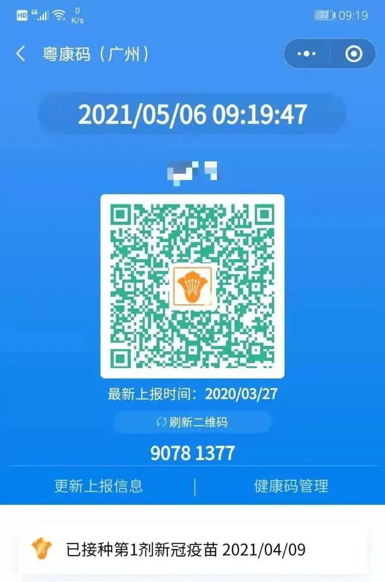 接种完第一剂新冠疫苗,穗康码中间将显示一朵黄色的木棉花;
