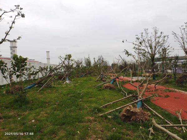 长江日报记者了解到,军山街黄陵片区倒树最严重。在军山科技园附近,新建绿化工程的树木出现成片倒伏。“这些新栽树木根还没扎稳,虽然打着支撑,但还是抵挡不住EF2级龙卷风。”该区园林部门相关负责人说。