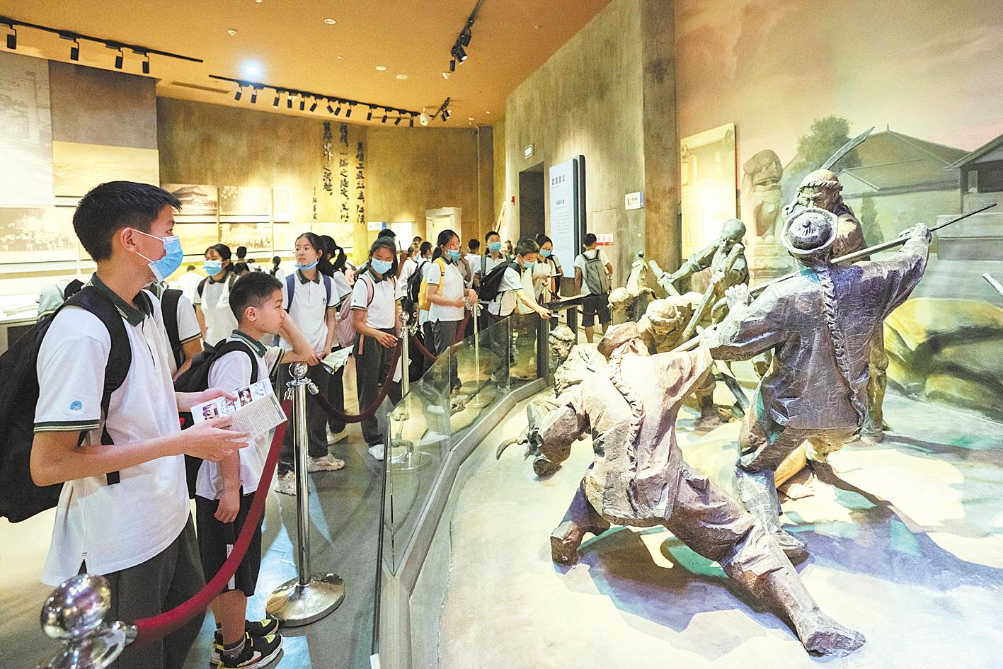 5月18日,武汉辛亥革命博物馆,仙桃荣怀学校的学生在此参观研学。当日是国际博物馆日,武汉全市各文博单位推出种类众多的“文博大餐”,吸引公众走进博物馆。 (湖北日报全媒记者 薛婷 摄)
