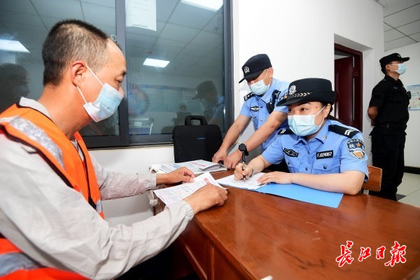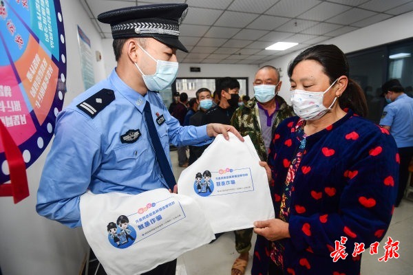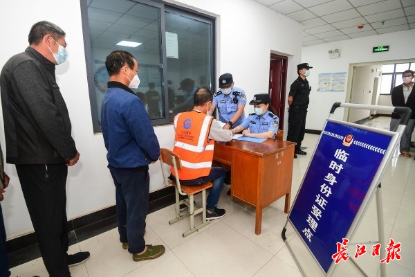 长江日报5月19日讯 19日,武汉经济技术开发区(汉南区)公安分局“复工复产民警服务队”来到军山科技产业园,给被临时安置在这里的“5·14”极端天气受灾区域人员补办临时身份证,并向工人们进行反电信网络诈骗宣传。