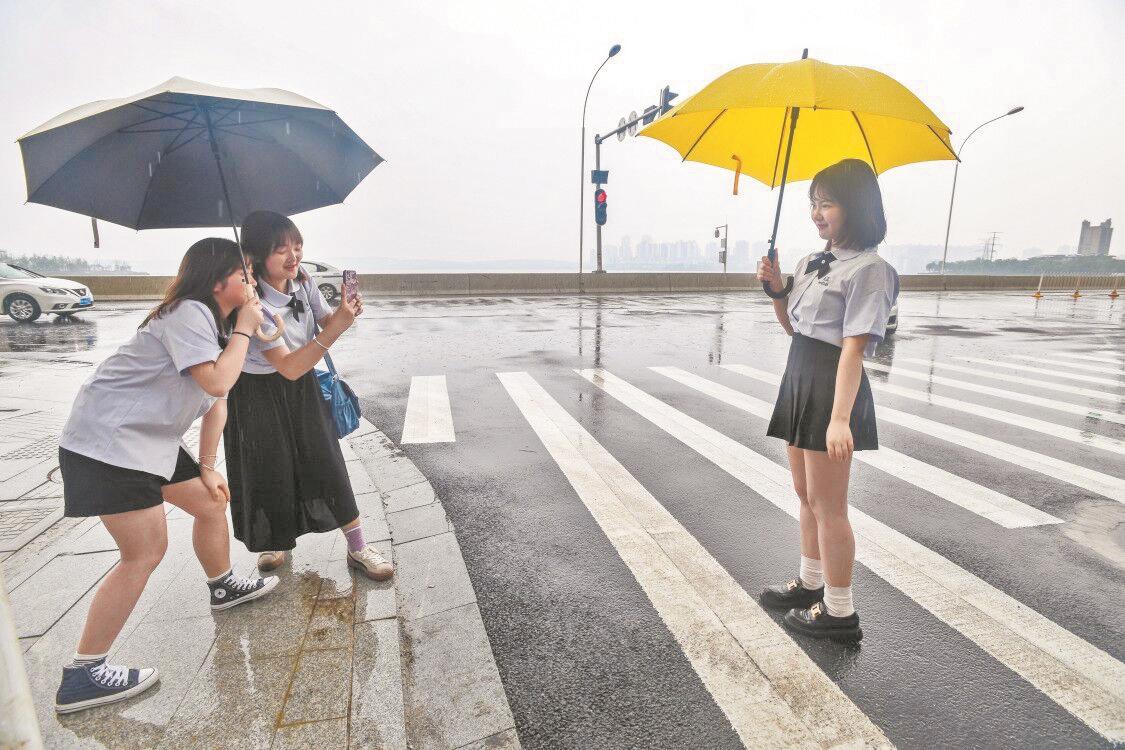 安康路从雄楚大道向南延伸,街道两侧低矮的房屋,到文荟街路口时戛然而止,标志性的红绿灯和路灯,眼前南湖一片碧波,与远处的狮子山交相辉映。这样的场景,让刘牧宇觉得很唯美。冒着小雨,她在路口逗留拍摄了半个多小时。