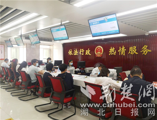 荆楚网(湖北日报网)讯(通讯员 肖满、曾黎、梁正)5月20日,武汉洪山区政务服务中心婚姻登记窗口迎来了结婚办证高峰,今天也是2021年上半年教师资格认定第一批现场确认工作的首日。
