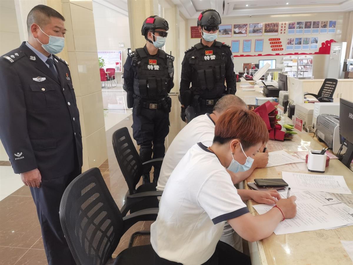 在看守所民警、巡特警的押解和见证下,贺富和关欣在民政局办理了结婚登记手续。