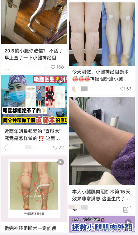 在某社交平台上,“小腿肌肉阻断术”也有着很高的人气和推荐度,上万人点赞“种草”。不少博主亲身体验并表示,做了之后轻轻松松就能瘦下来。