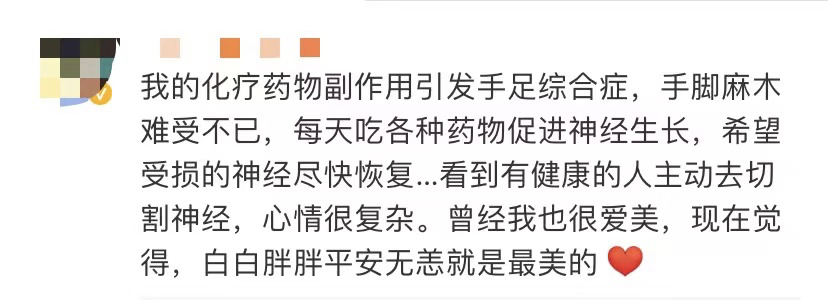 还有网友分享亲身经历并呼吁:白白胖胖、平安无恙就是最美的↓