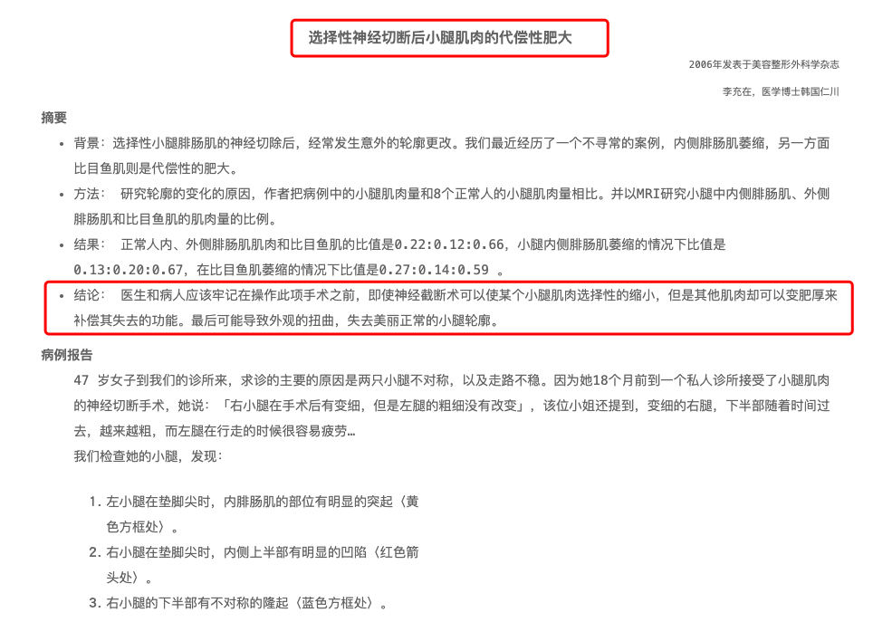 问题来了,“小腿肌肉阻断术”真的能达到永久瘦腿的效果吗?