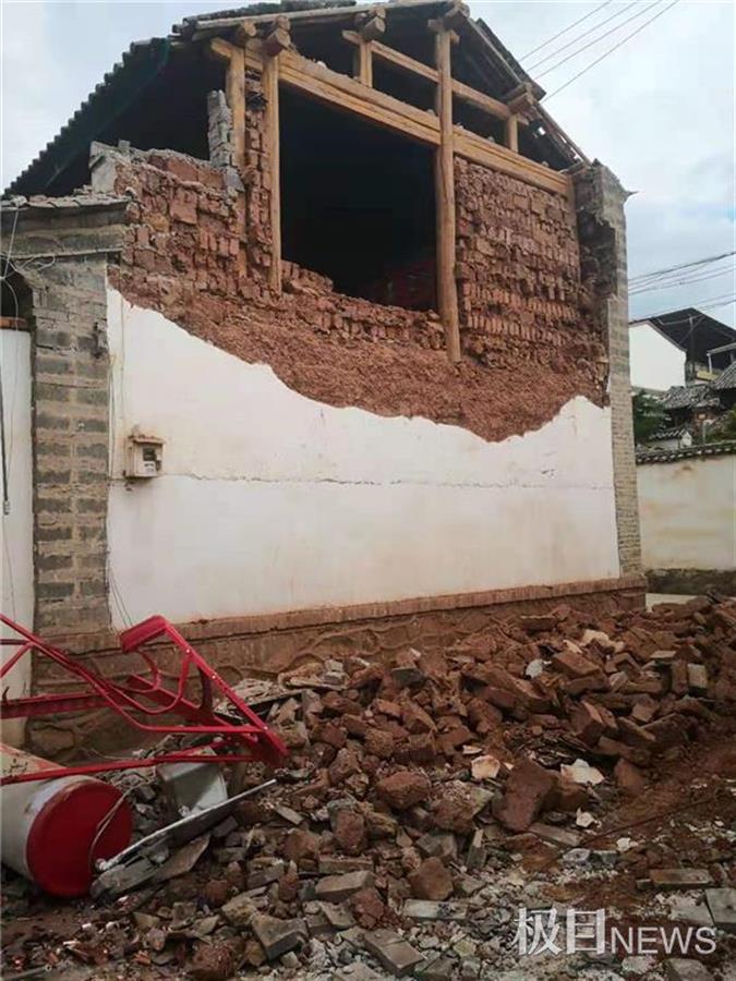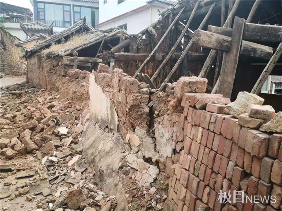 极目新闻记者从现场图片看到,垮塌的房屋多是木结构,较为老旧,与之相邻的砖瓦房未见墙体开裂等现象。