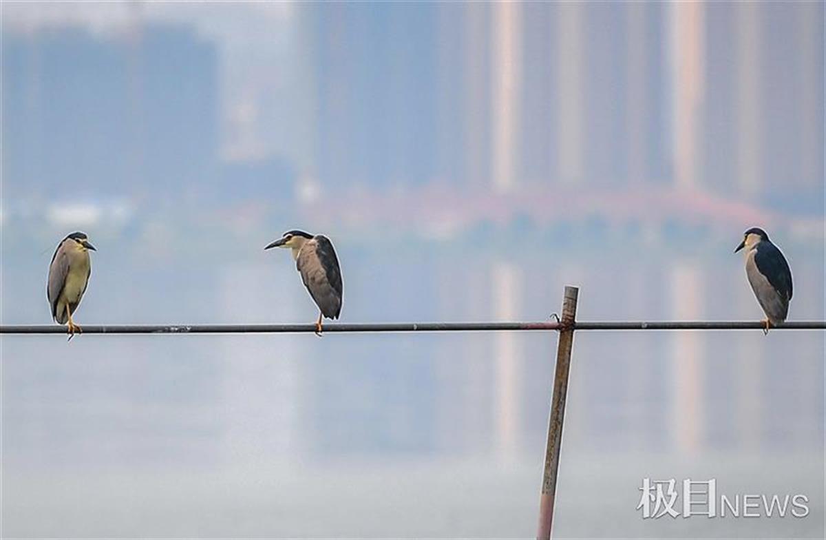 5月21日下午,在江夏藏龙二桥杨桥湖湖面上,有这么一群精灵在湖面追逐嬉戏,场面十分壮观。“湖面经常有它们美丽的身影,或成群结队,或悠闲自在的在湖面觅食,近几年来水体治理取得了很大成效,杨桥湖蓝天白云,湖水清澈,这里也成了鸟类居住的天堂,不只是夜鹭,还有很多种类的鸟都在这里安营扎寨了……”正在赏鸟的居民告诉记者。