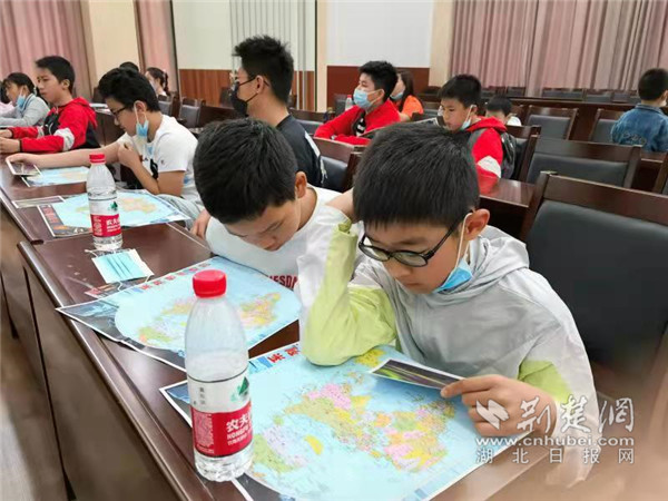孩子们认真辨别地图,学习地理知识。 通讯员供图