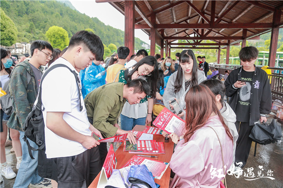 活动开始后,已有数对情侣率先出发,前往龙缸景区内的云端廊桥、龙缸天坑、爱情崖等众多景点打卡积分。