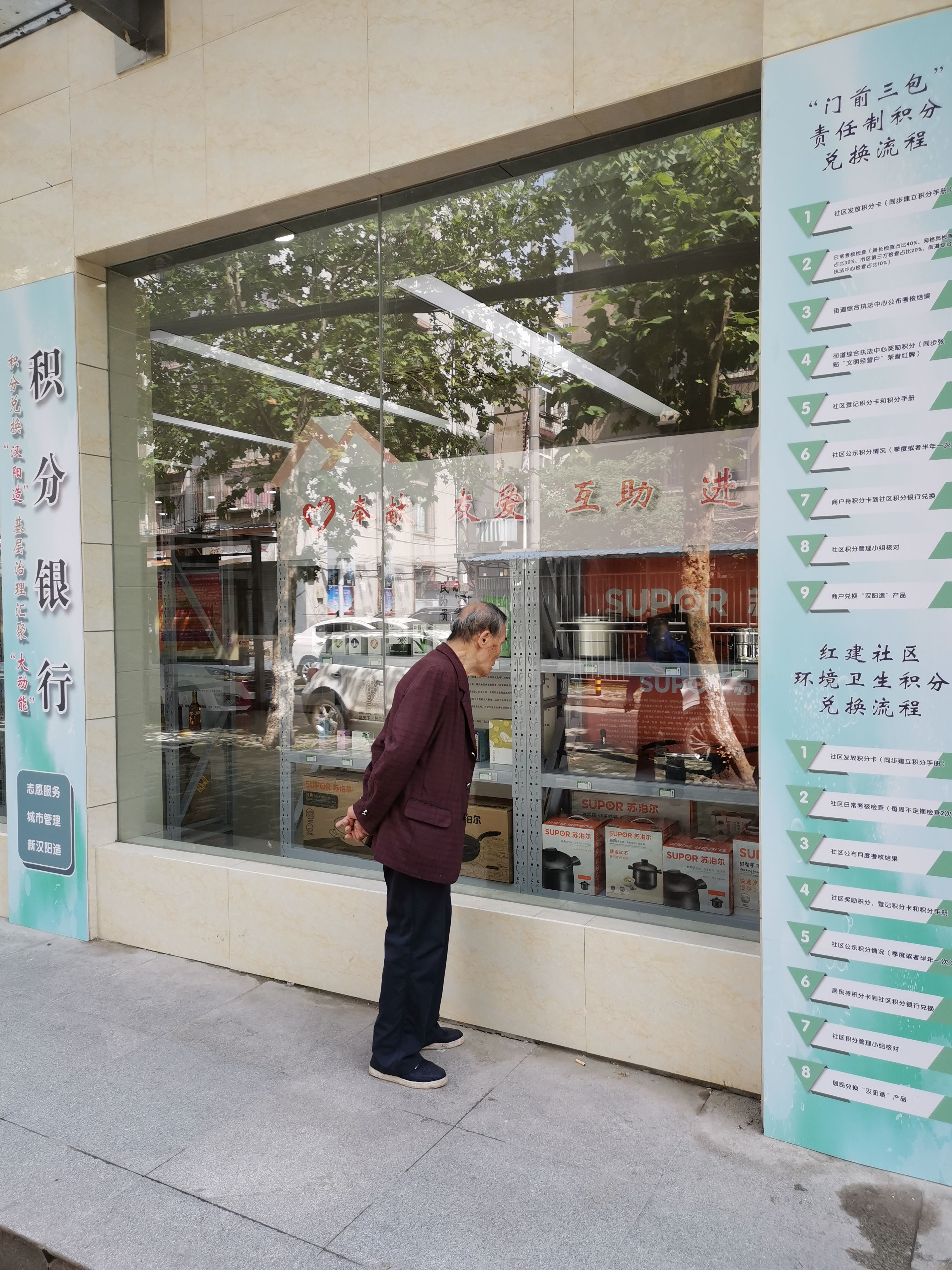社区用于兑换环境卫生积分的“汉阳造”产品吸引了居民目光。 长江日报记者史强 摄