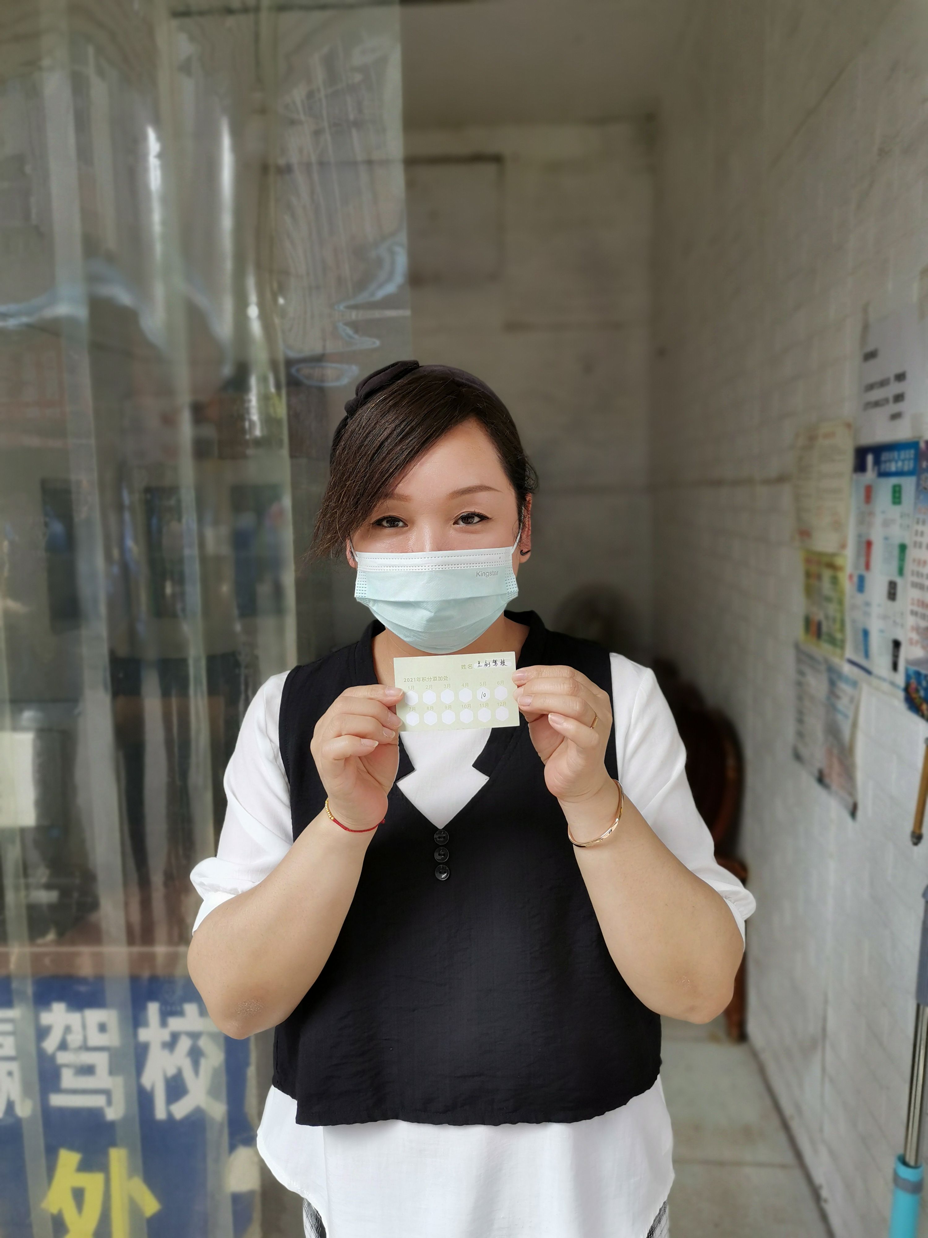 “门前三包”文明经营户展示拿到的积分卡。 长江日报记者史强 摄