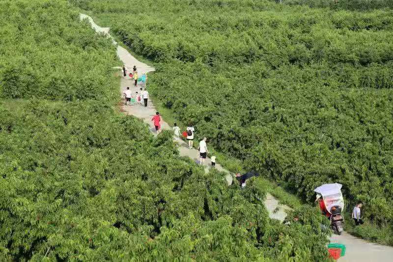 在武汉市新洲区李集街八屋村,800亩桃园已挂果,红冠桃挂满枝头,不少市民带着家人前来体验采摘乐趣。现在桃园进入大量采收期,优质红冠桃地头价每斤仅4元,而超市和水果摊上目前卖的河北桃和山东桃价格则在10元左右一斤,市民自然更乐意选购本地桃。