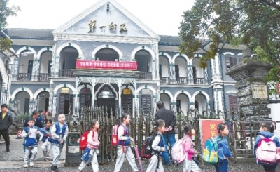 4月26日,湖南第一师范学校,放学的附小学生走出校门。