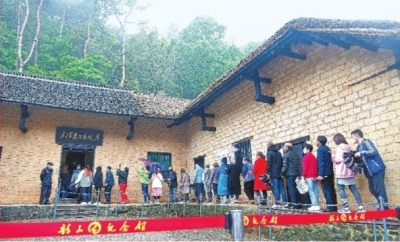 一位妈妈指着刻有“毛泽东小道”的石牌告诉小朋友:“毛爷爷当年去外婆家时,走的就是这条路,还要翻山越岭……”路边,“乌泡”如红玛瑙挂在枝头,金银花一蓬一蓬待放。