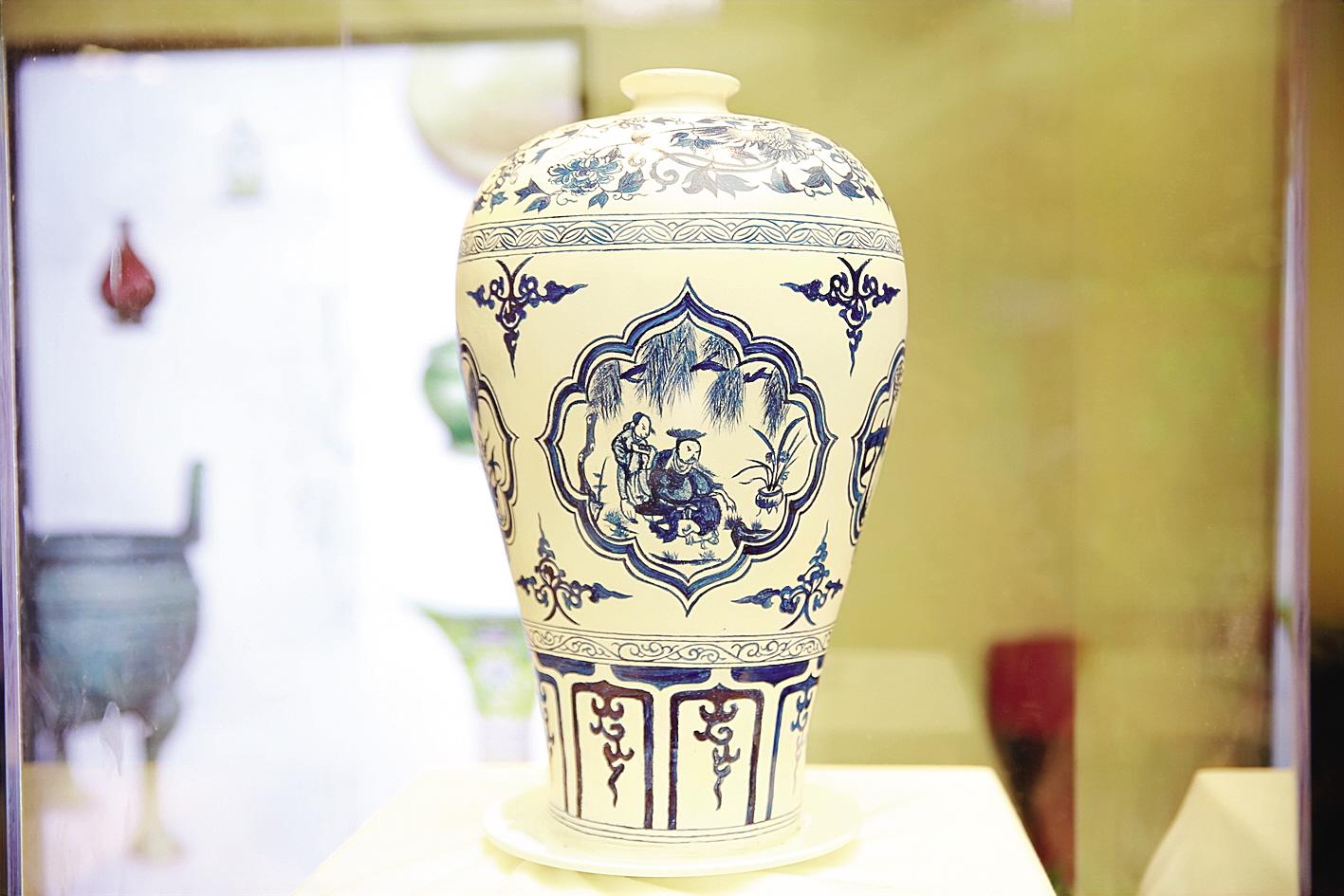 巧克力元青花四爱图梅瓶。