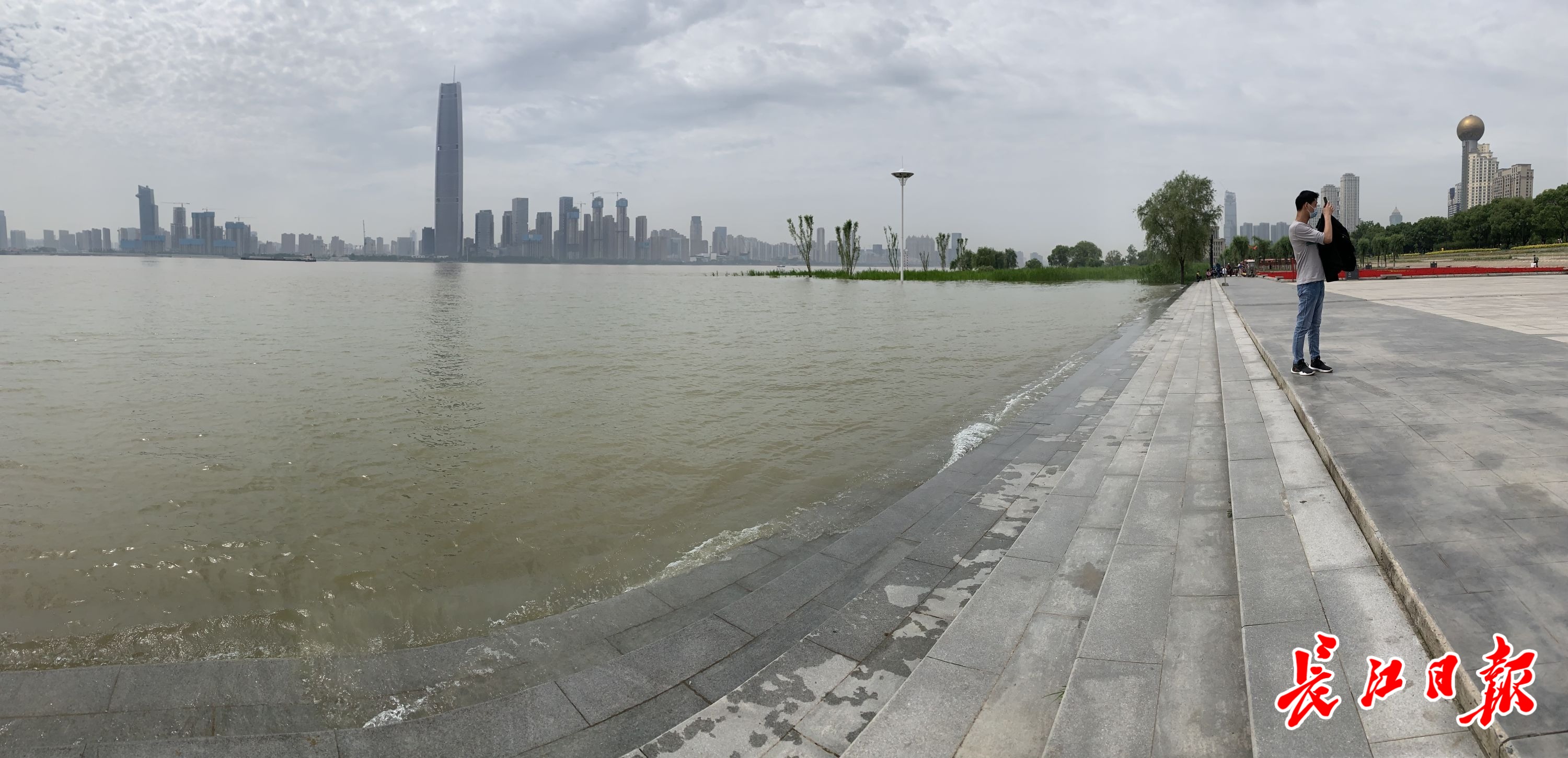 25日,江水已逼近汉口江滩二级平台。长江日报记者王怡人 摄