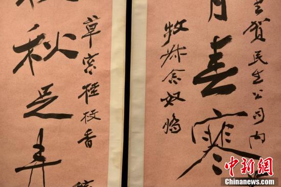 图为张大千《行书十七言联》作品。 中新社记者 李志华 摄