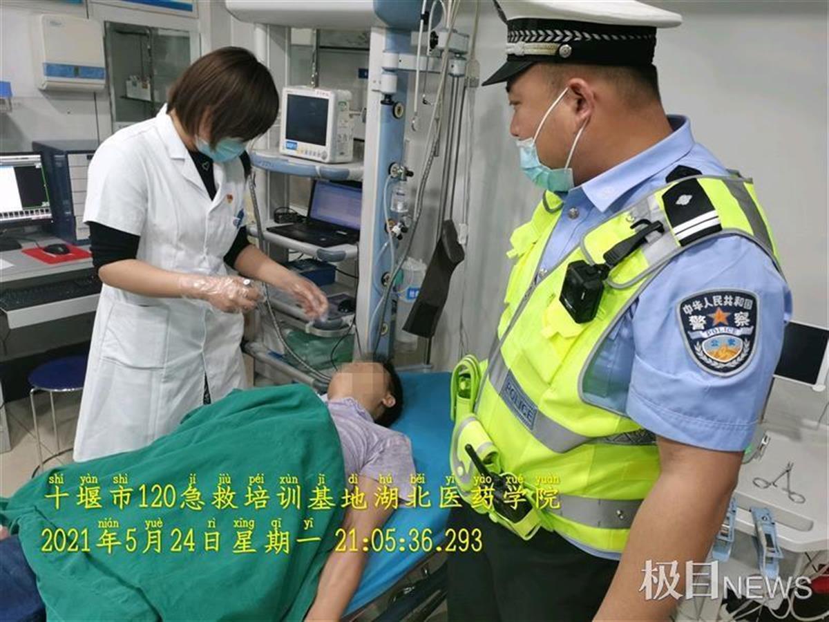 5月24日晚,十堰市公安交通局一大队民警在武当路查酒驾,一名男子驾车时突发疾病,恰好遇到正在查酒驾的交警,一大队民警了解情况后,立即驾驶警车载着男子,开启警灯,用时10分钟紧急送到医院救治。