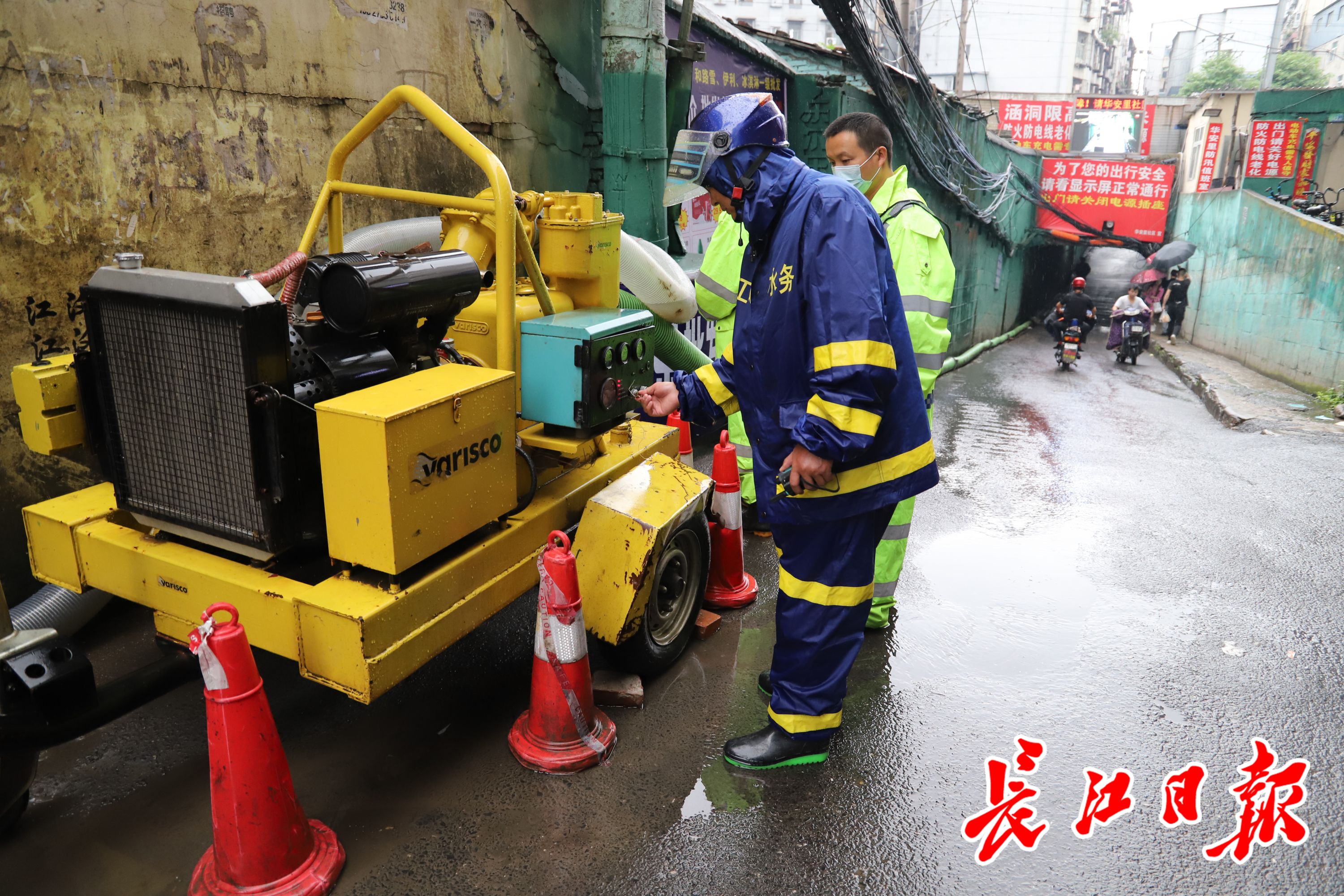 高红钢介绍说,25日晚接到上级的关于对流天气预警通报,他们排水队员赶到这个值守点进行24小时值守。华安里社区书记杜文胜称,社区每天派2名安保队员,配合协助8名排水队员三班倒进行抽排工作,保证该地区居民出行无忧。