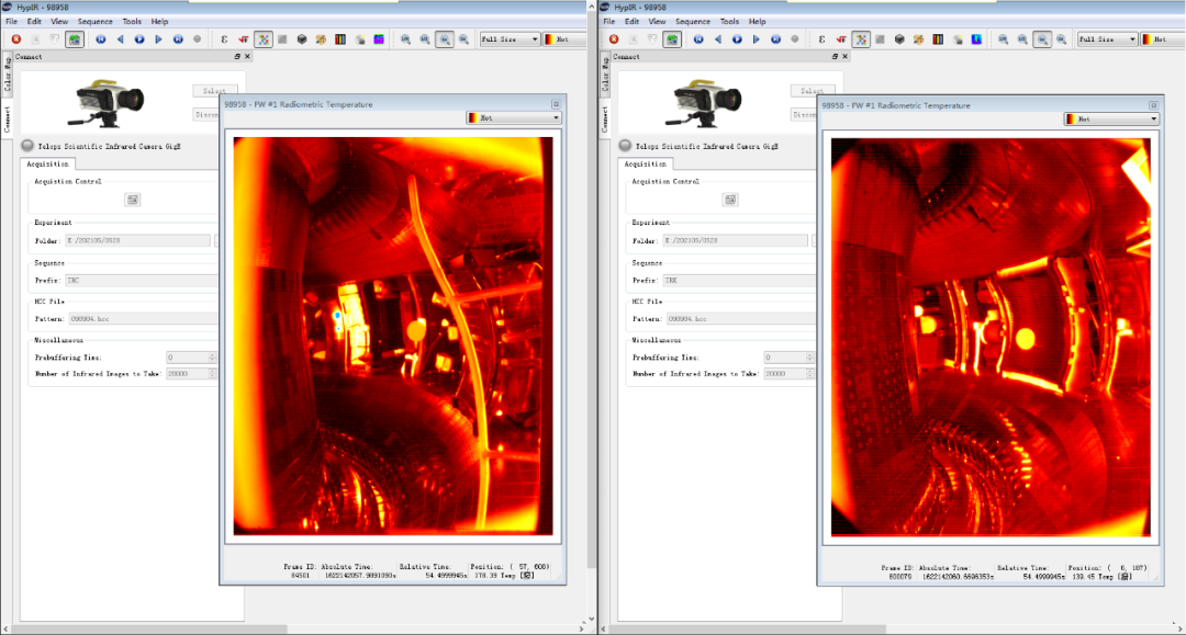 “人造太阳”1.2亿摄氏度成功“燃烧”100秒时,内部的红外影像。中科院合肥物质科学研究院等离子体物理研究所供图