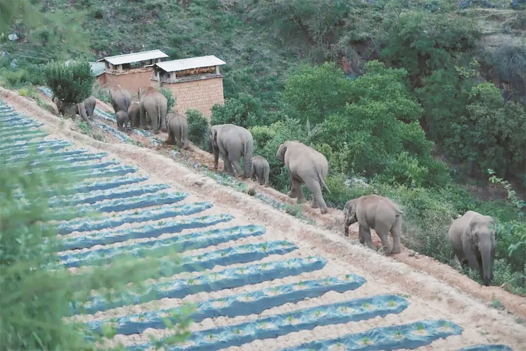 近日,15头原本生活在西双版纳州勐养子保护区的亚洲象一路北上,造访云南多地。5月26日,象群曾在峨山县沐勋村停留数个小时。当地村民发布的视频显示,象群走进庄稼地踩踏和觅食,还有塑料棚被踩塌。