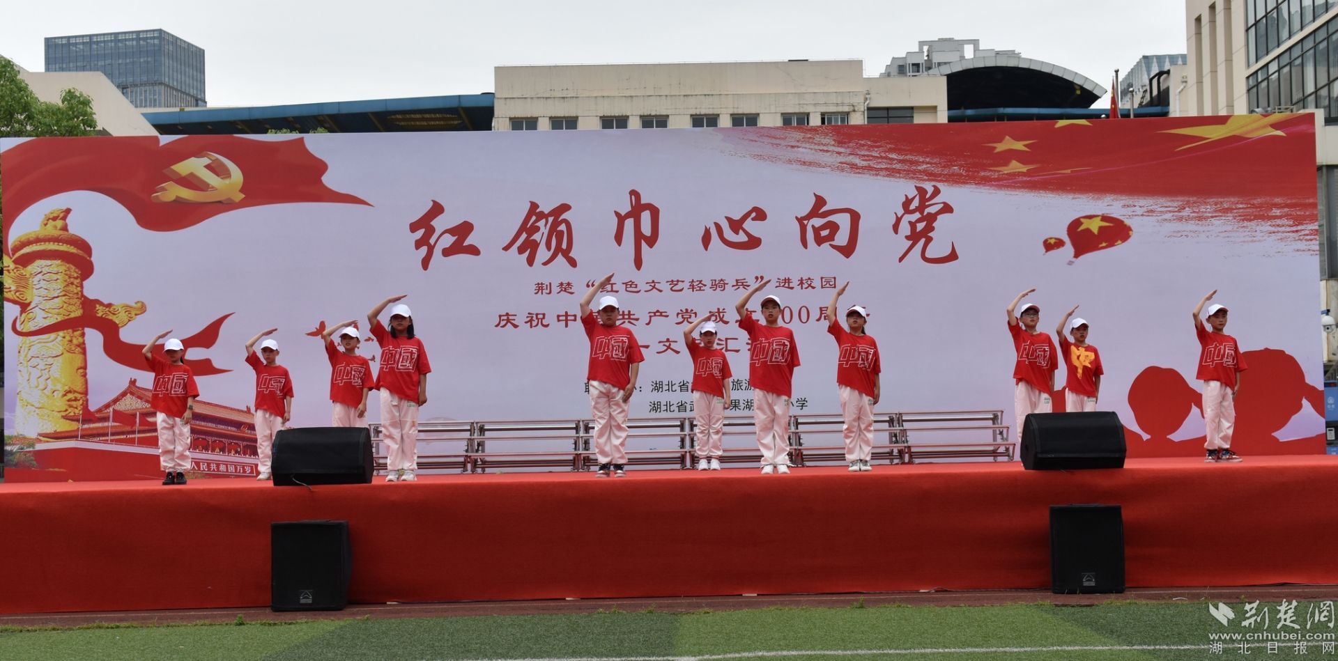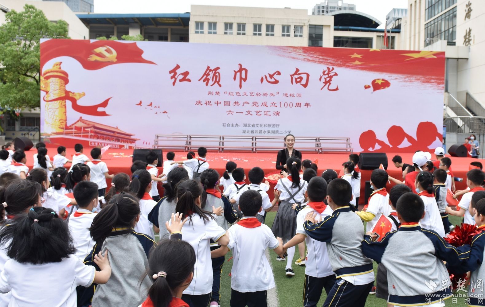 荆楚网(湖北日报网)讯(通讯员 刘维城 )今年是中国共产党建党 100周年,是国家十四五开局之年,是实现“两个一百年”奋斗目标的历史交汇期。水果湖二小积极响应习总书记在党史学习教育动员大会上的号召,树立少先队员永远跟党走的决心。5月28日,在“六一儿童节”到来之际,该校与省文旅厅联手,组织师生开展“红领巾心向党”主题活动暨省文旅厅荆楚“红色文艺轻骑兵”进校园庆祝中国共产党成立100周年六一文艺汇演。