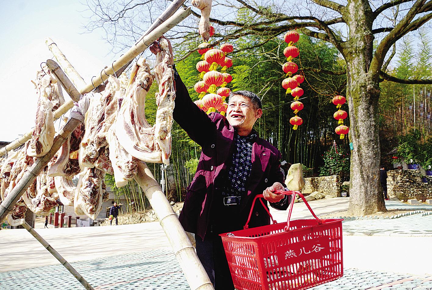 2020年元旦前,罗田县大河岸镇周家嘴村贫困户全部脱贫,村民们高兴地晒起了年货。(通讯员 周中平 摄)