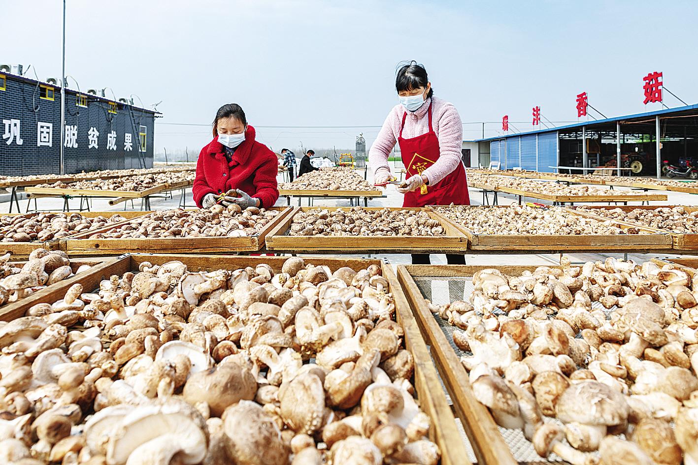 2020年11月21日,红安县杏花乡龙潭寺村脱贫户忙着将香菇剪根、装袋后发往武汉,这一特色项目带动了该村15户贫困户脱贫。 (通讯员 张发喜 摄)