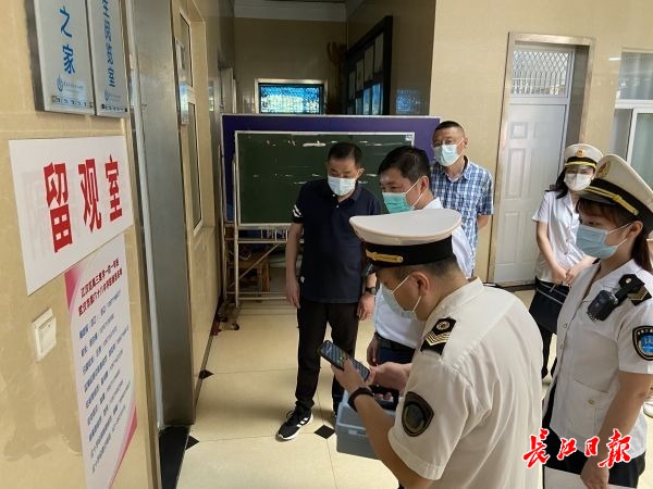 检查人员在检查学校留观室。长江日报记者刘晨玮 摄