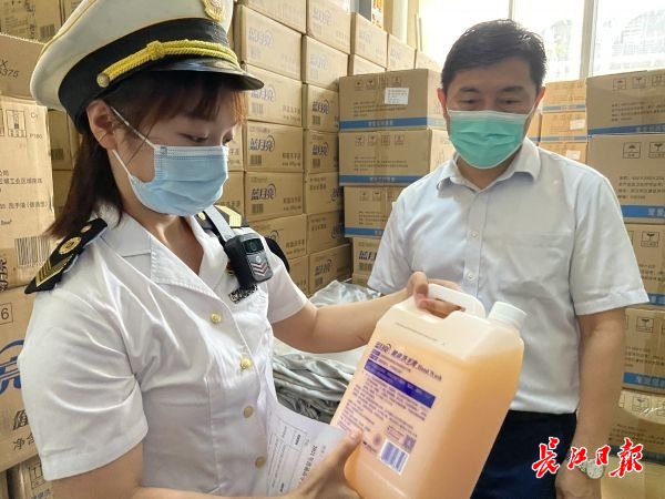 检查人员在检查防疫物资储备。长江日报记者刘晨玮 摄