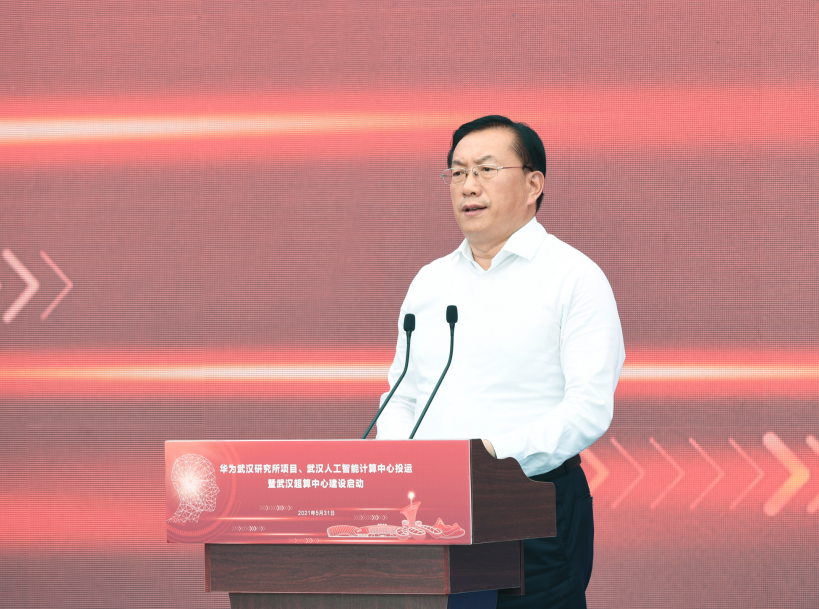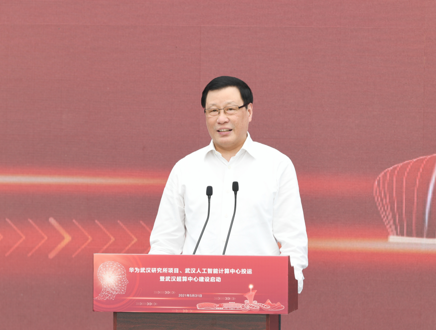 湖北日报讯 (记者杨念明、周呈思、陈迹)5月31日下午,华为武汉研究所项目、武汉人工智能计算中心正式投运,武汉超算中心建设启动。省委书记应勇宣布项目投运启动。省委副书记、省长王忠林,工业和信息化部党组成员、副部长王江平出席活动并讲话,华为技术有限公司常务董事、ICT产品与解决方案总裁汪涛致辞。