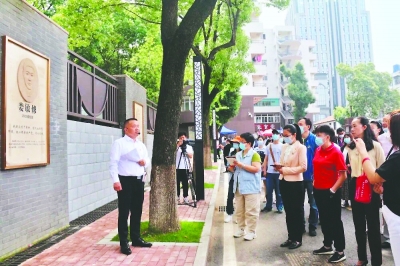 今年,来十四中参观红色遗迹进行党史教育学习的单位和市民很多,十四中的学生们熟读校史,学习党史,成为志愿讲解员。“在周恩来、郭沫若的影响感召下,‘三厅’人才济济,有阳翰笙、胡愈之、冼星海、光未然、叶浅予、张曙等。同时‘三厅’下属机构有四个抗敌宣传队,十个抗敌演剧队、五个电影放映队、一个电影制片厂、一个漫画宣传队以及‘孩子剧团’。这些艺术团体组织丰富了抗日宣传活动,他们在武汉组织的几次宣传活动,掀起了全国文化抗战的高潮。”在小讲解员的引导下,前来参观的市民有了沉浸式的党史学习体验。