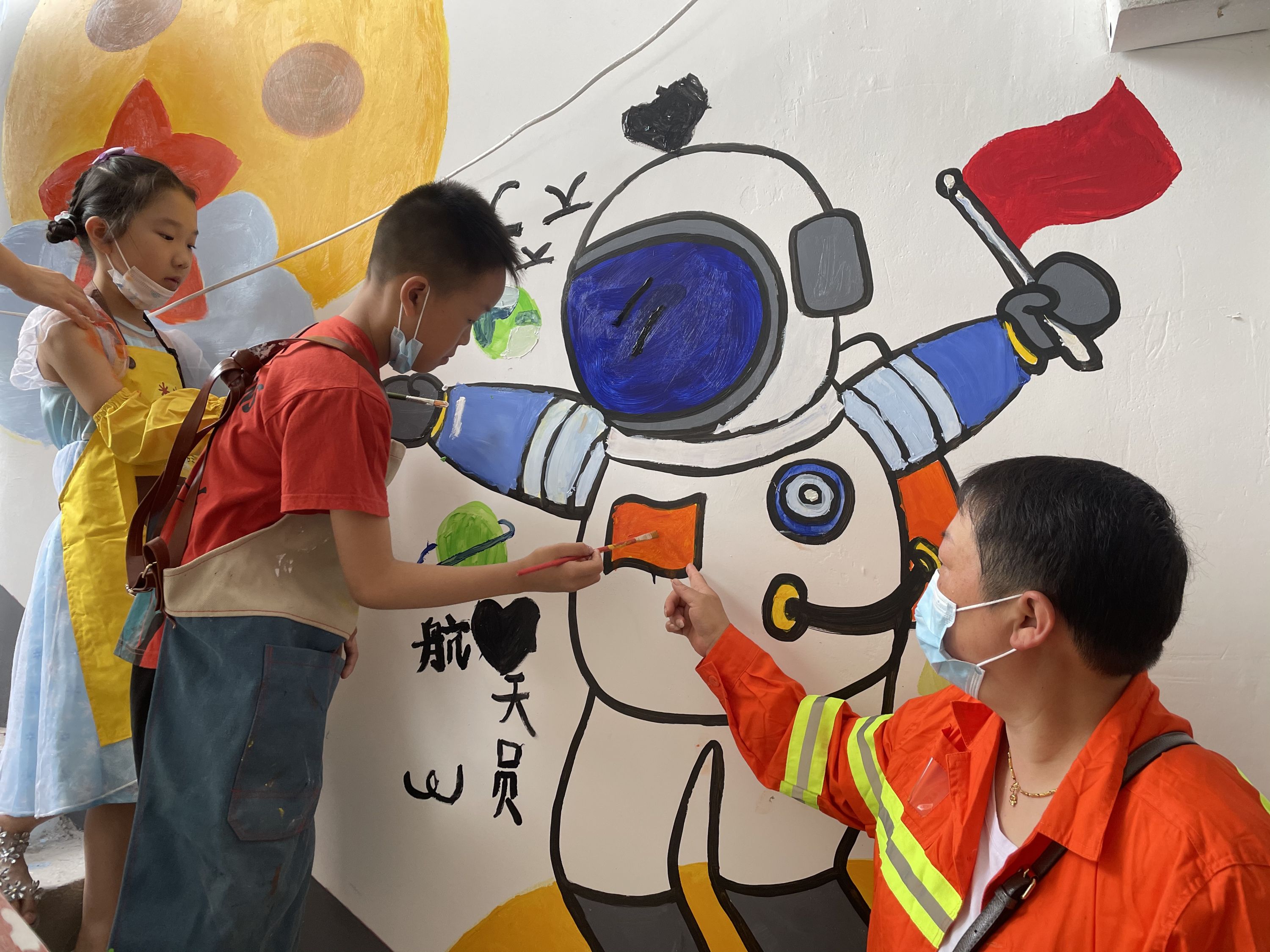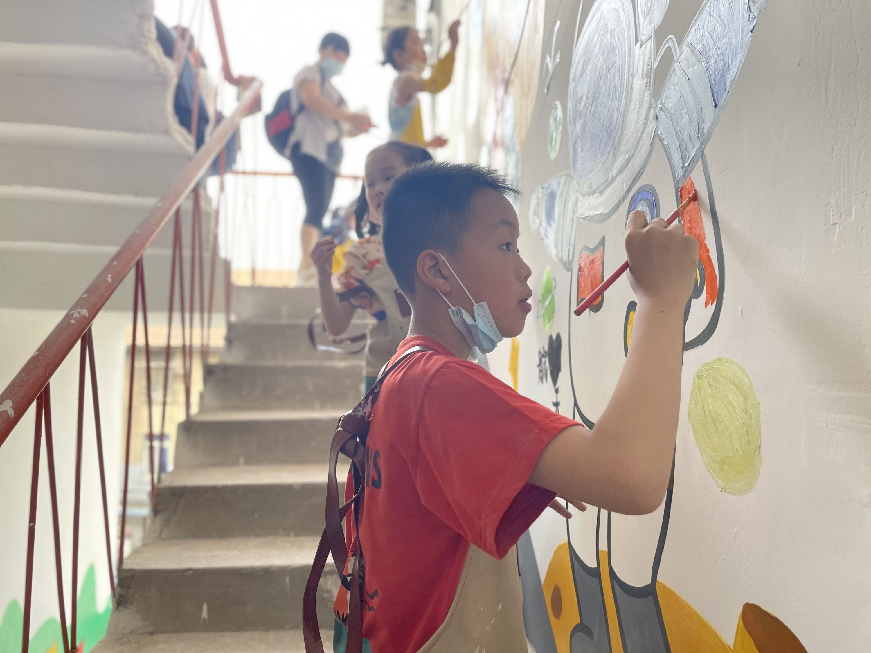 活动现场,孩子们发挥想象力在楼道里画上各种主题的涂鸦:穿着防护服的志愿者、高举“武汉加油”的市民、宇航员漫步太空……孩子眼中的中国共产党、疫情防控知识及英雄的武汉、可爱的祖国、武汉地标美景及文明行为规范等四大类主题醒目突出,楼道栏杆上还写有“我是一面漂亮的墙,别往我身上乱贴乱画哟!”等劝导语,老旧小区变身成艺术长廊。