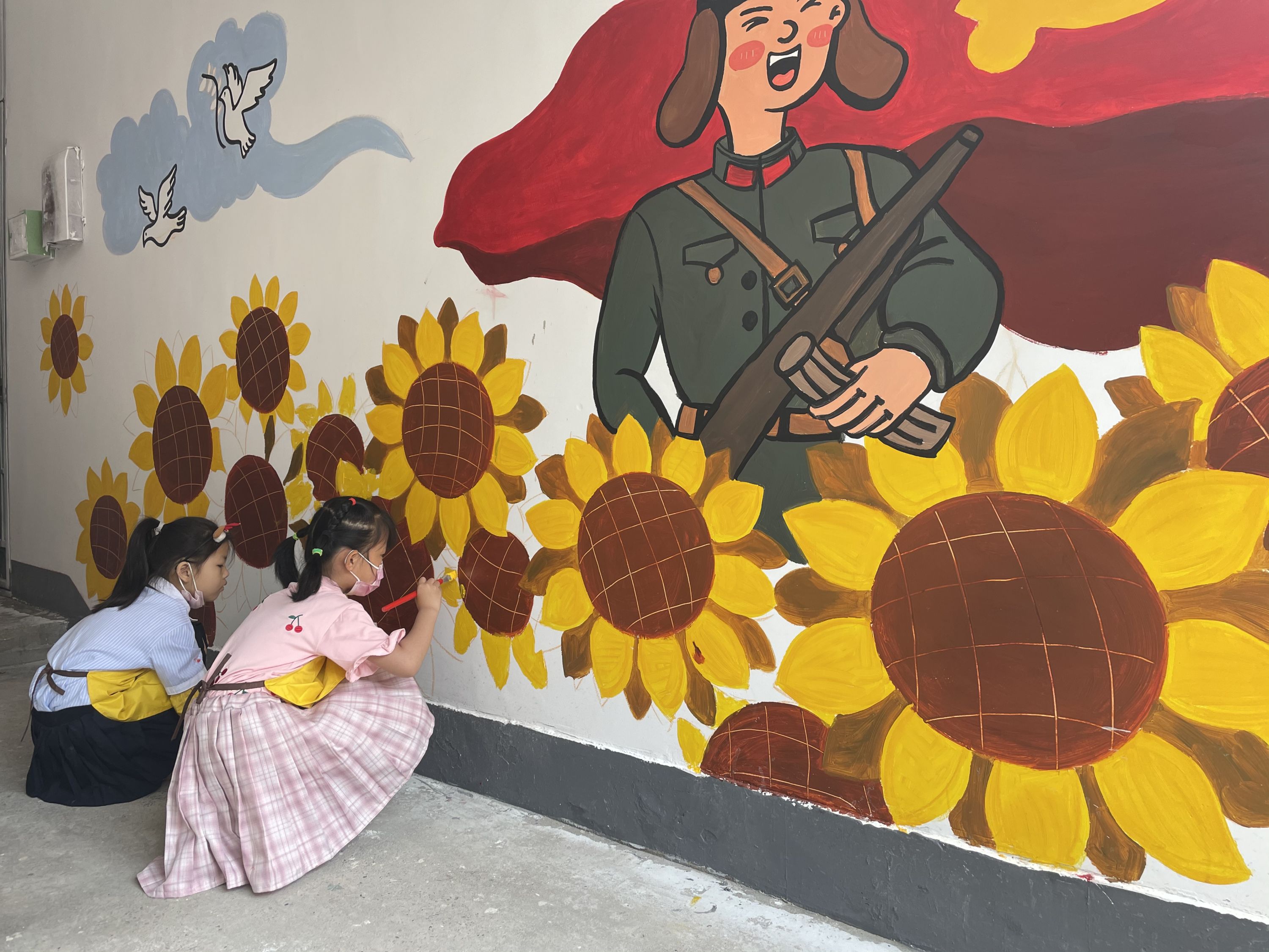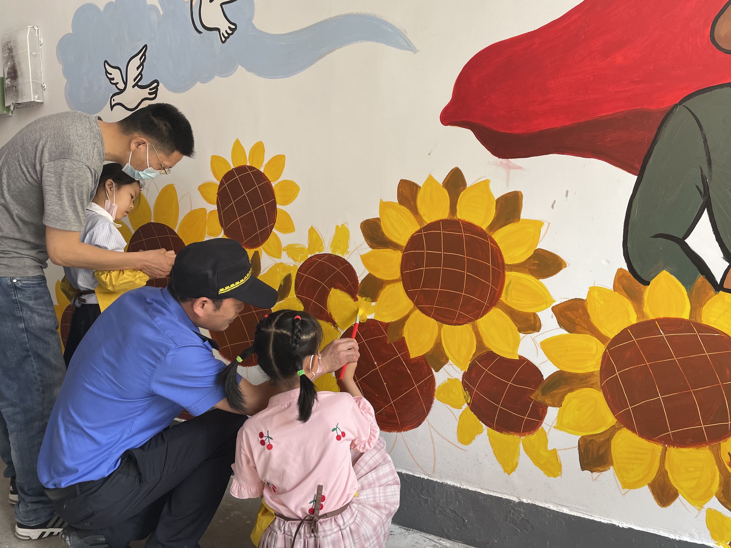 长江日报5月30日讯 30日上午,硚口区易家街工农路社区一处围院式老旧小区里欢声笑语,刷白的墙壁成为画布,楼道里,孩子们正挥笔作画。