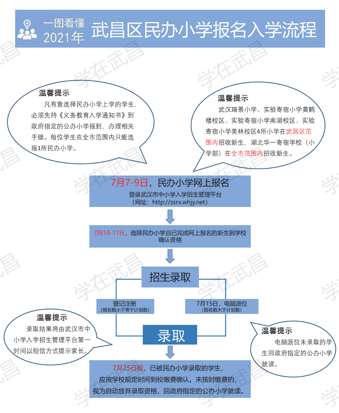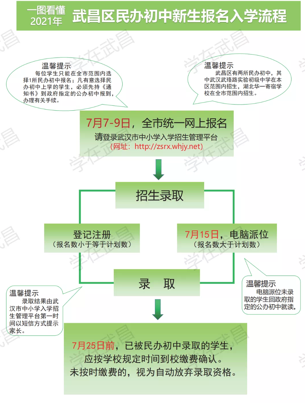记者看到,《指南》对武昌区民办学校招生工作进行了详细解读。7月7-9日有意选择民办学校(含分类计划)上学的学生, 必须全部在《武汉市中小学入学招生管理平台》上进行网上报名,未参加网上报名的学生,民办学校不得录取,过时不得补报。
