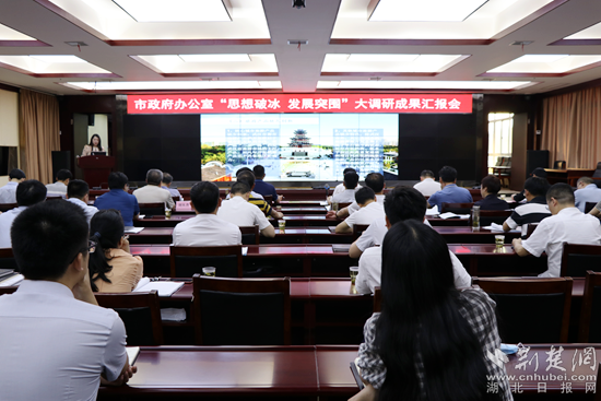 麻城市政府办公室“思想破冰 发展突围”大调研成果汇报会现场。通讯员 供图
