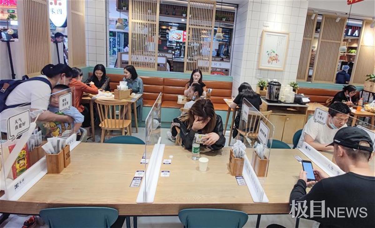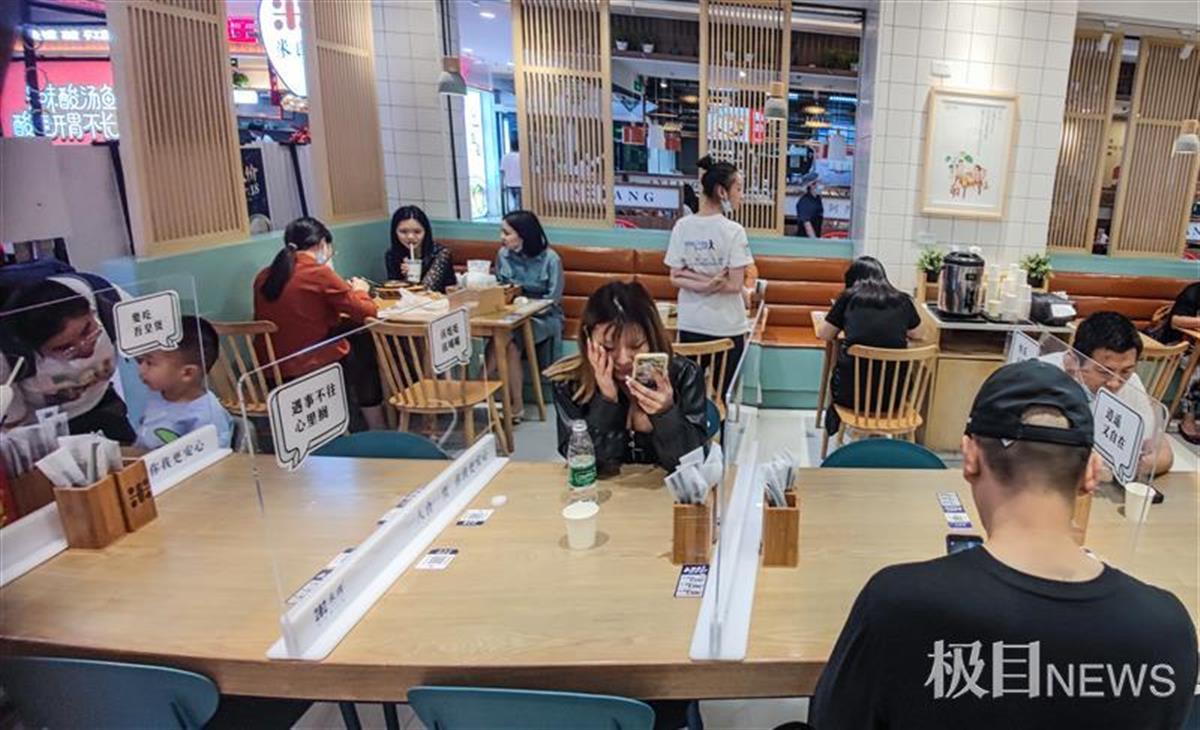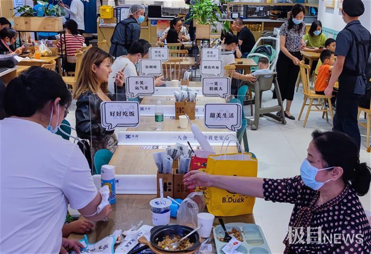 6月4日午时,在武昌汪家墩一家餐厅内,陌生人同桌用餐显得自在,没有“偶遇”的尴尬。