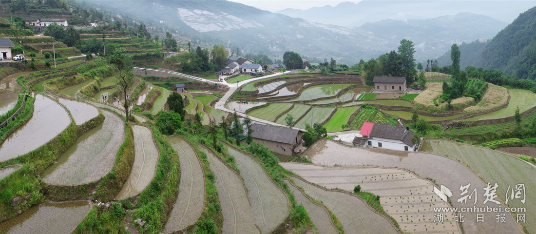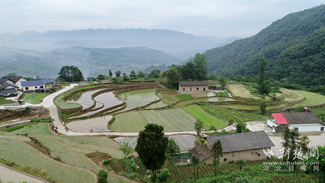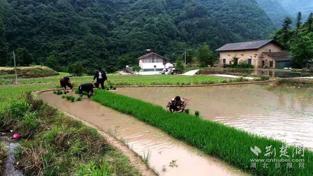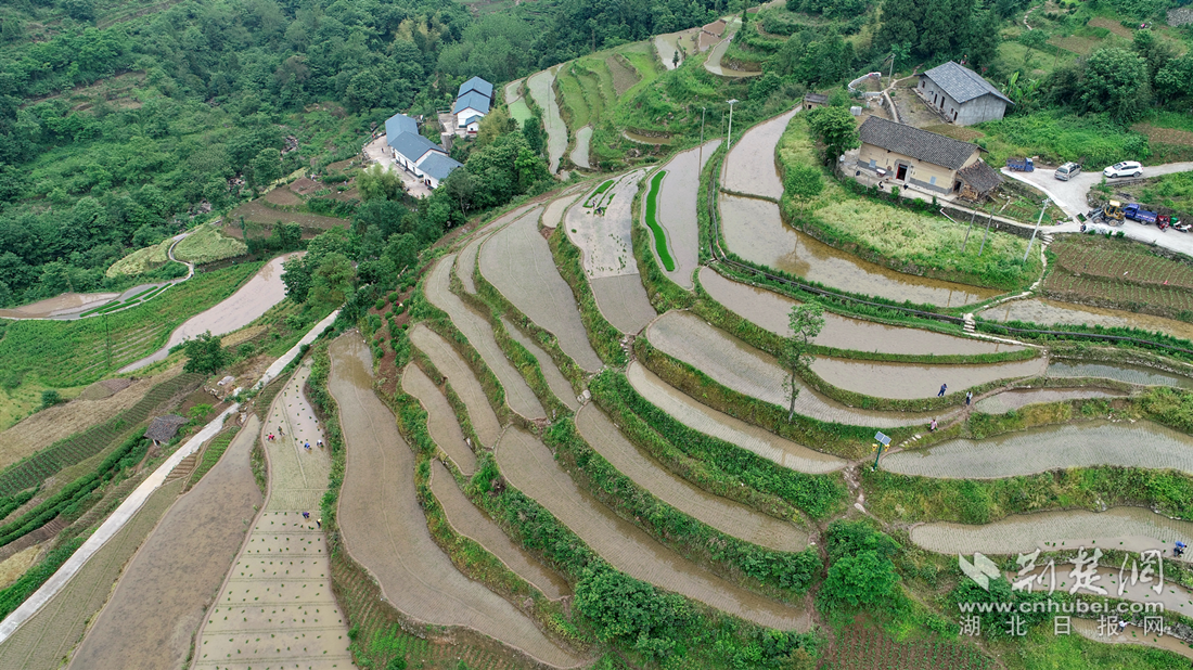 荆楚网(湖北日报网)讯(通讯员 刘建)芒种已过,在湖北兴山峡口镇琚坪村,绵延如带的梯田里,一抹抹翠绿点缀其间,这里平均海拔800米,是传统粮油产区,素有“贡米之乡”的美誉,同时也是兴山县绿色水稻种植示范试验基地。