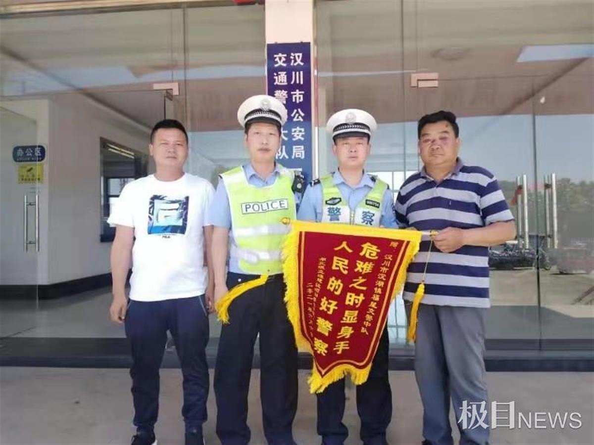 越野车避让其他车辆,翻入路边水渠中,车子几乎全部被水淹没。危急时刻,湖北省汉川市公安局交警大队福星中队的民警赶到,砸开车窗,和路过的群众一起,拖出车中人员。6月6日,被救人员和家属赶到福星中队,送来了两面锦旗。